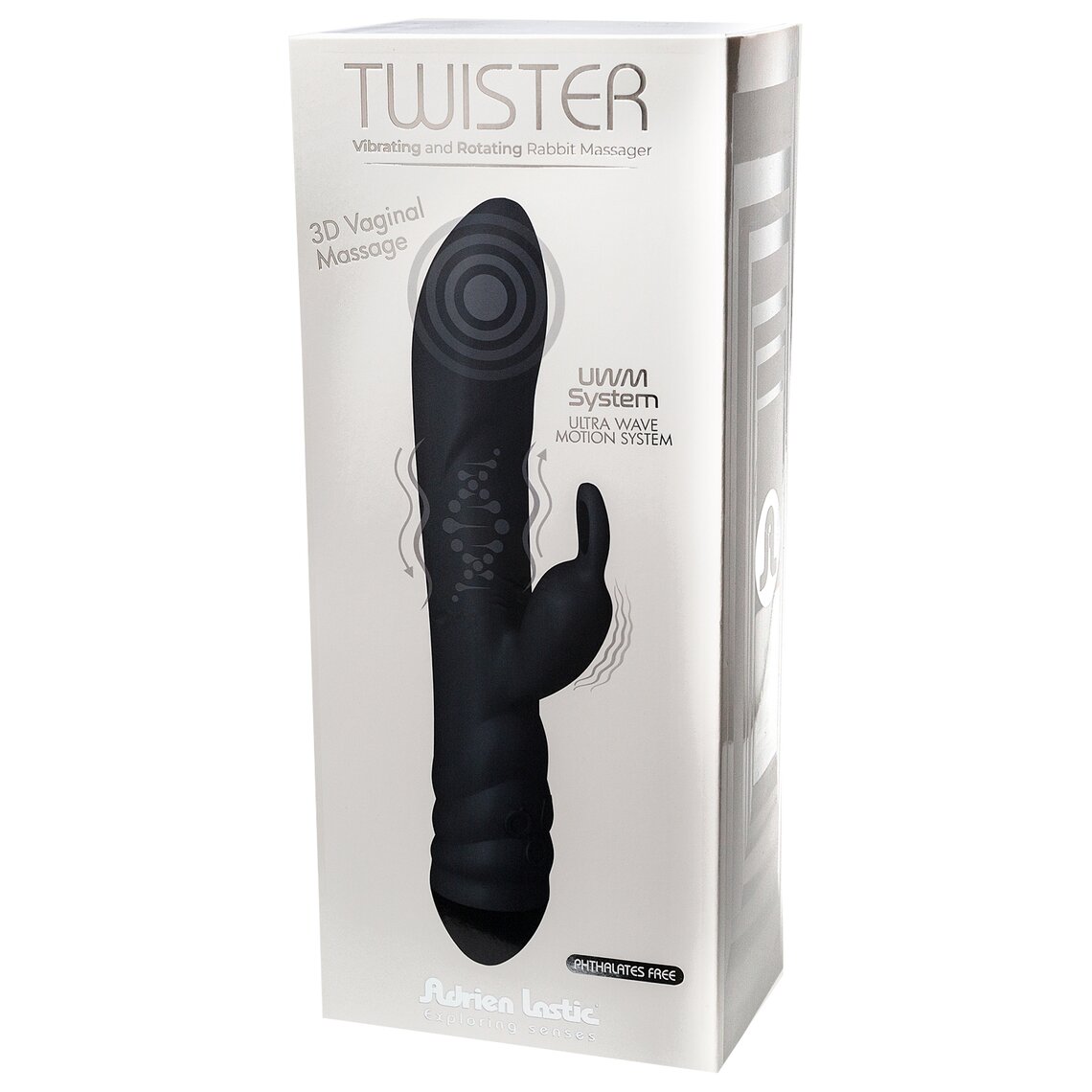 Con tre motori Twister ti delizierai. con un'esperienza vaginale 3D completa. Un motore controlla le ondulazioni 3D con le quali proverai rotazioni e sensazioni meravigliose. La seconda è una vibrazione di coniglio, con un coniglio lungo e flessibile le vibrazioni sono appositamente progettate per la stimolazione del clitoride. Infine, c'è la vibrazione vaginale, una vibrazione che si diffonde su tutto il dildo Twister e che ti farà sentire a disagio. vibrare come mai prima d'ora.
