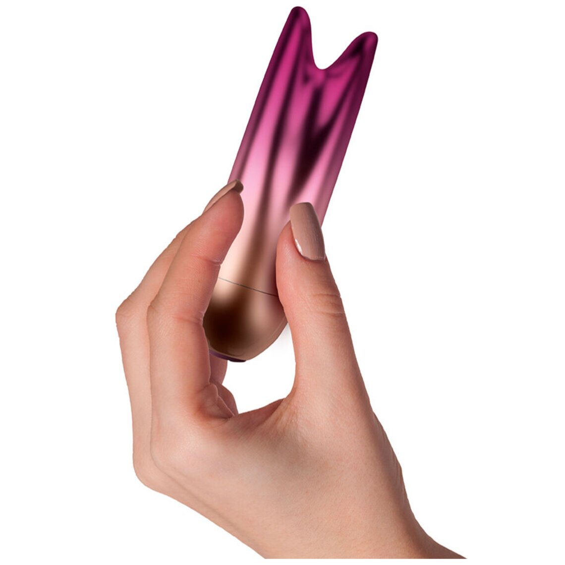 Bullet vibrante con doppia punta. 10 modalità di velocità. Resistente all’acqua.