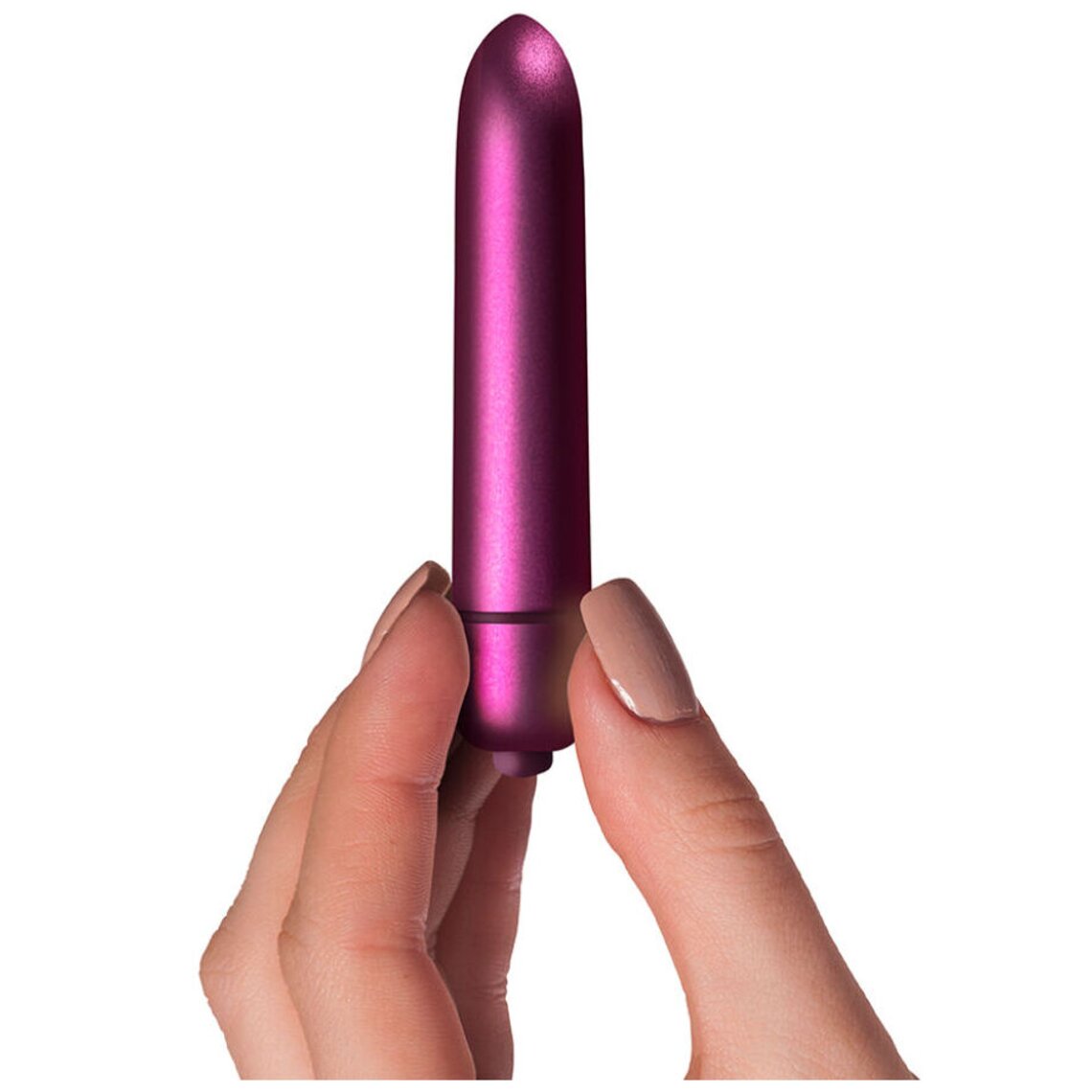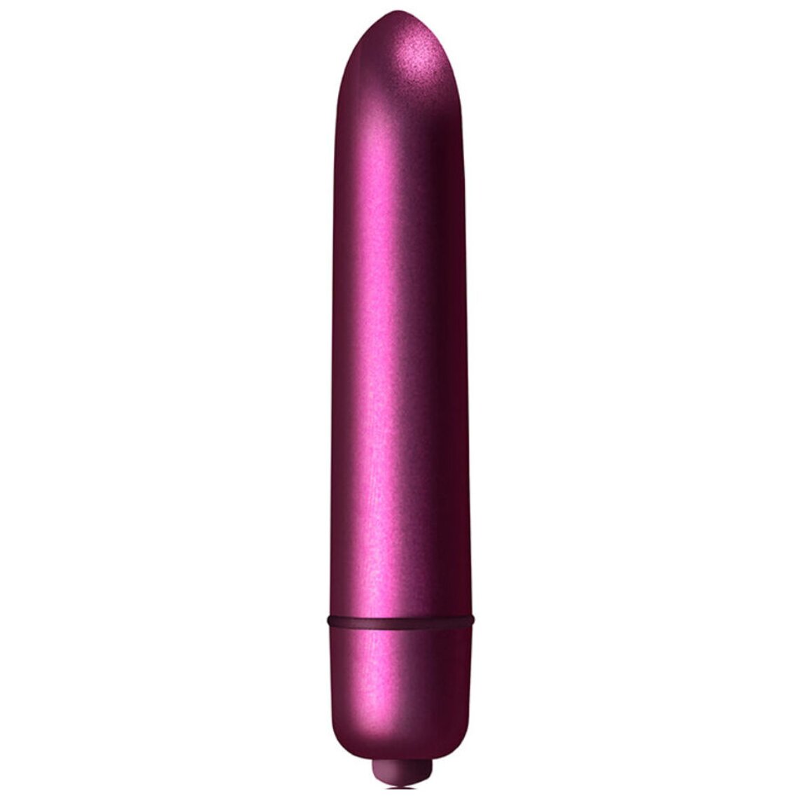 Mini vibratore bullet rosa metallizzato. È lungo 9 cm e resistente all’acqua.