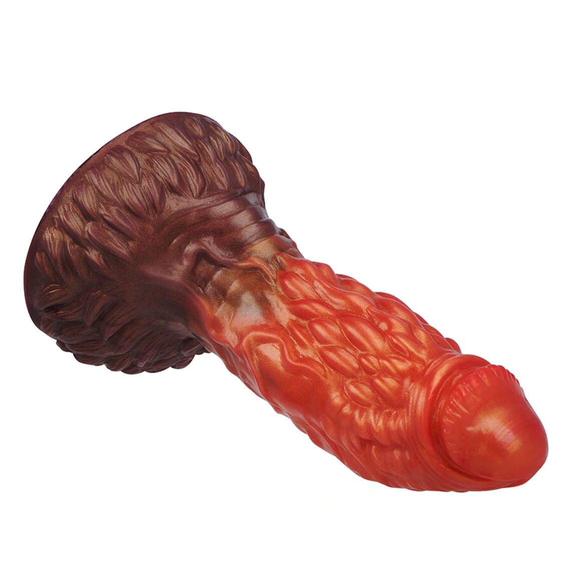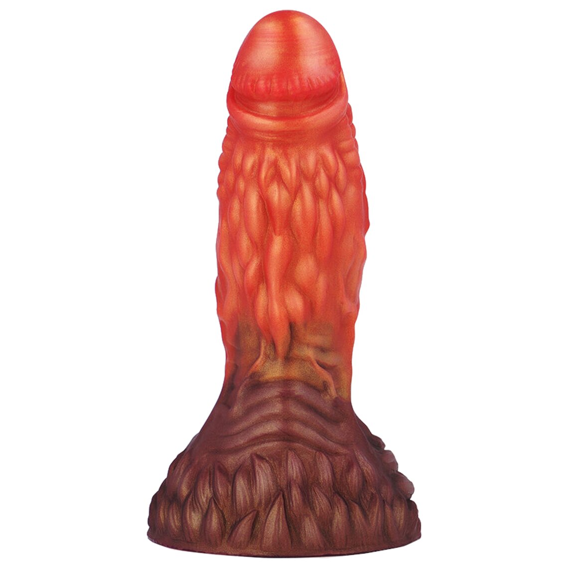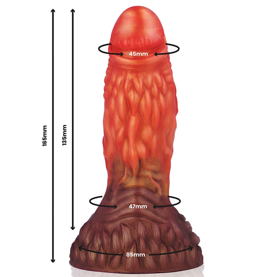 Dildo fantasy dall’aspetto fallico ispirato alle radici della terra. Alto 16,5 cm. Bicolore: marrone e arancione.