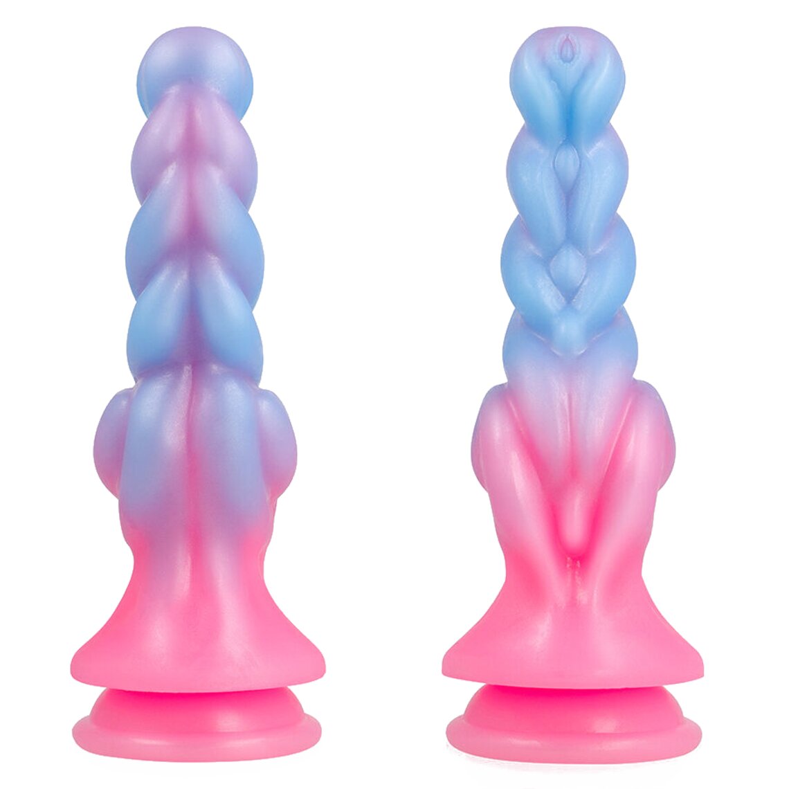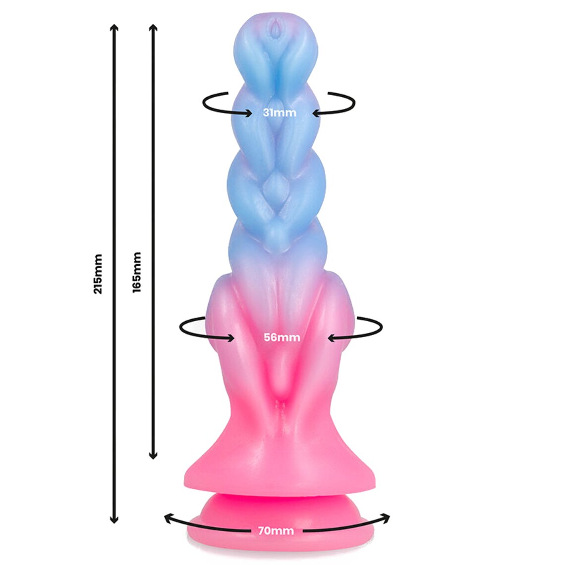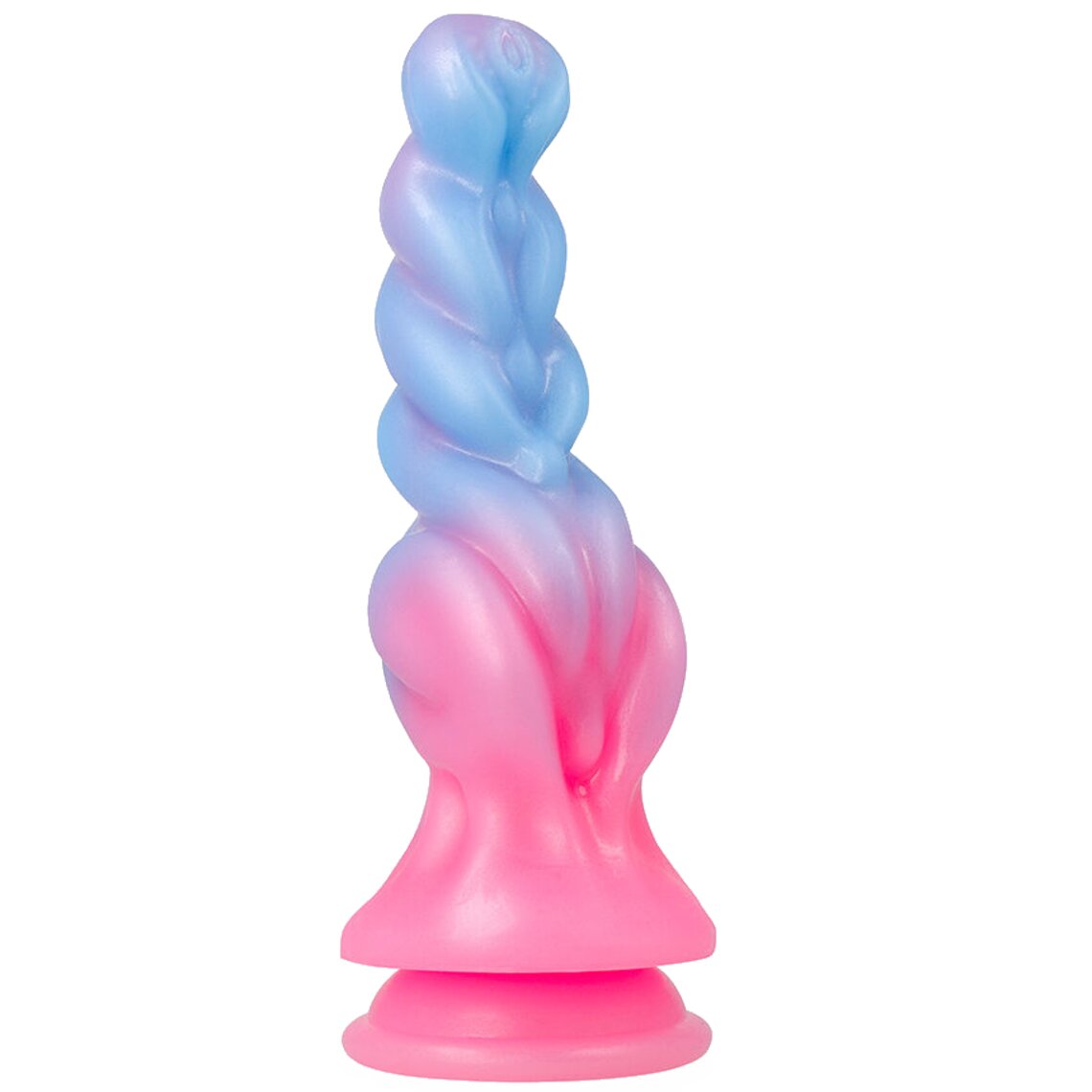 Dildo fantasy ispirato all’alba. Alto 21,5 cm. Azzurro e rosa.