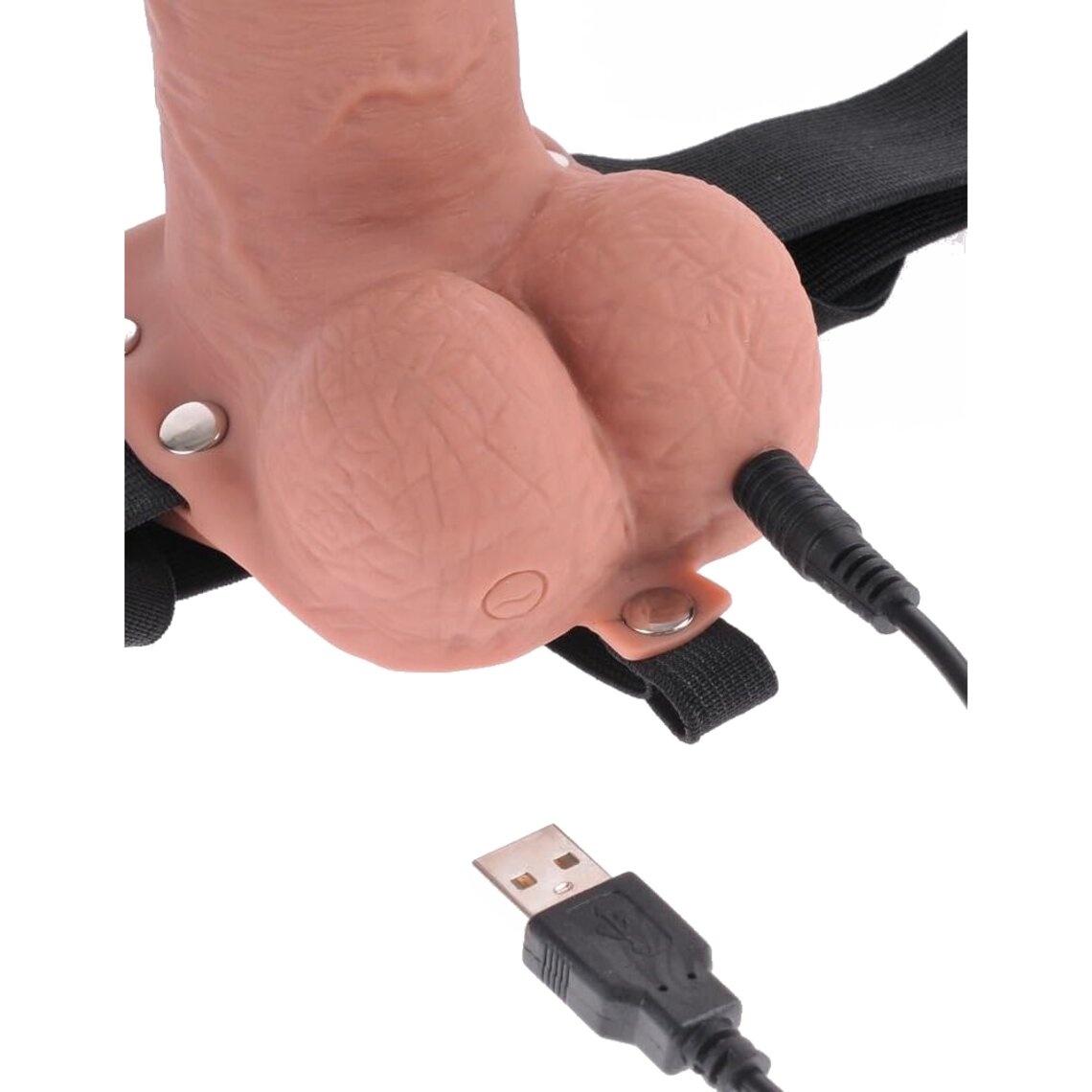 Strap-on con pene vibrante cavo da 20 cm di lunghezza e 5 cm di diametro.