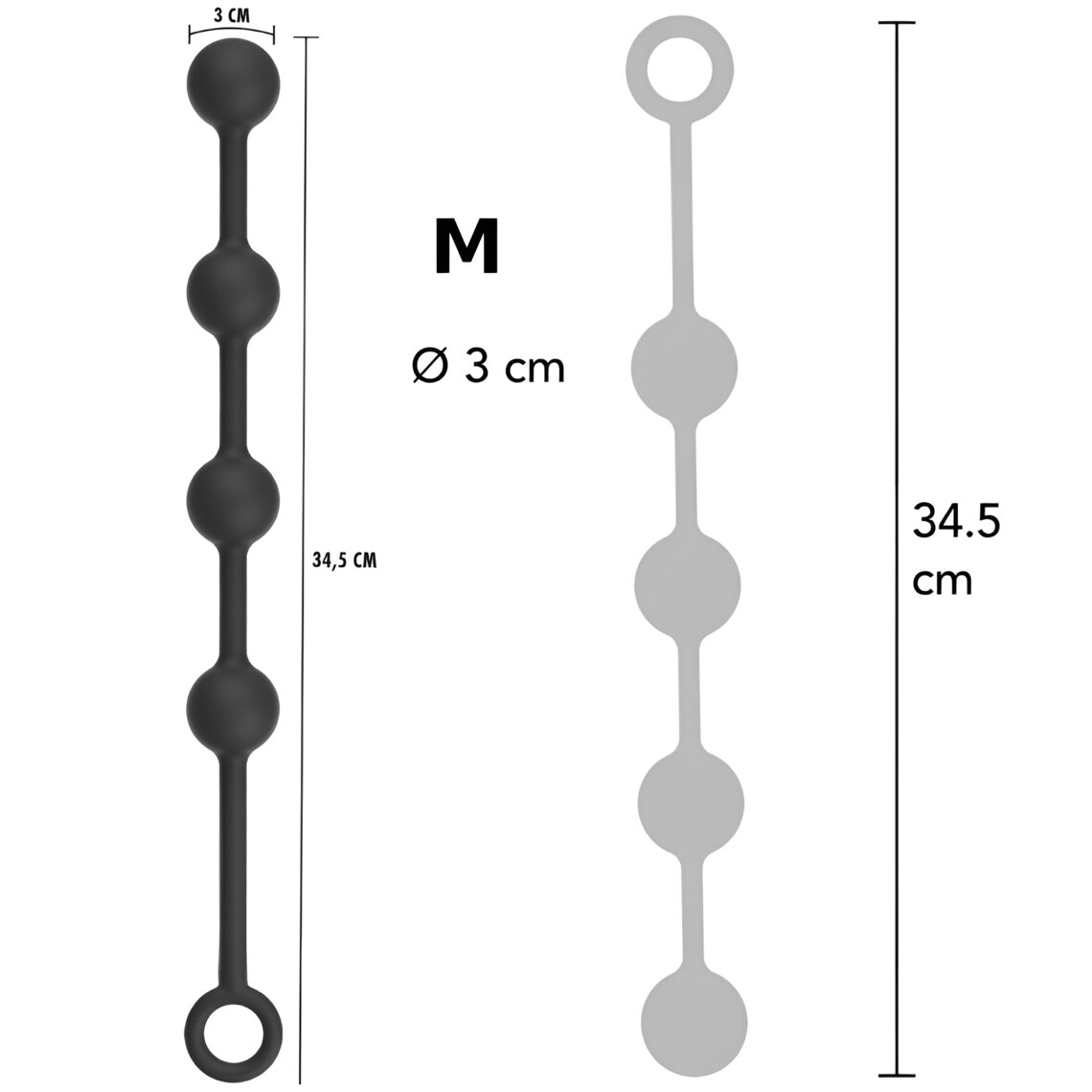 • ◾  Disponibili in tre misure: M (Ø 3 cm – 34,5 cm), L (Ø 4 cm – 39 cm) e XL (Ø 5 cm – 49 cm)