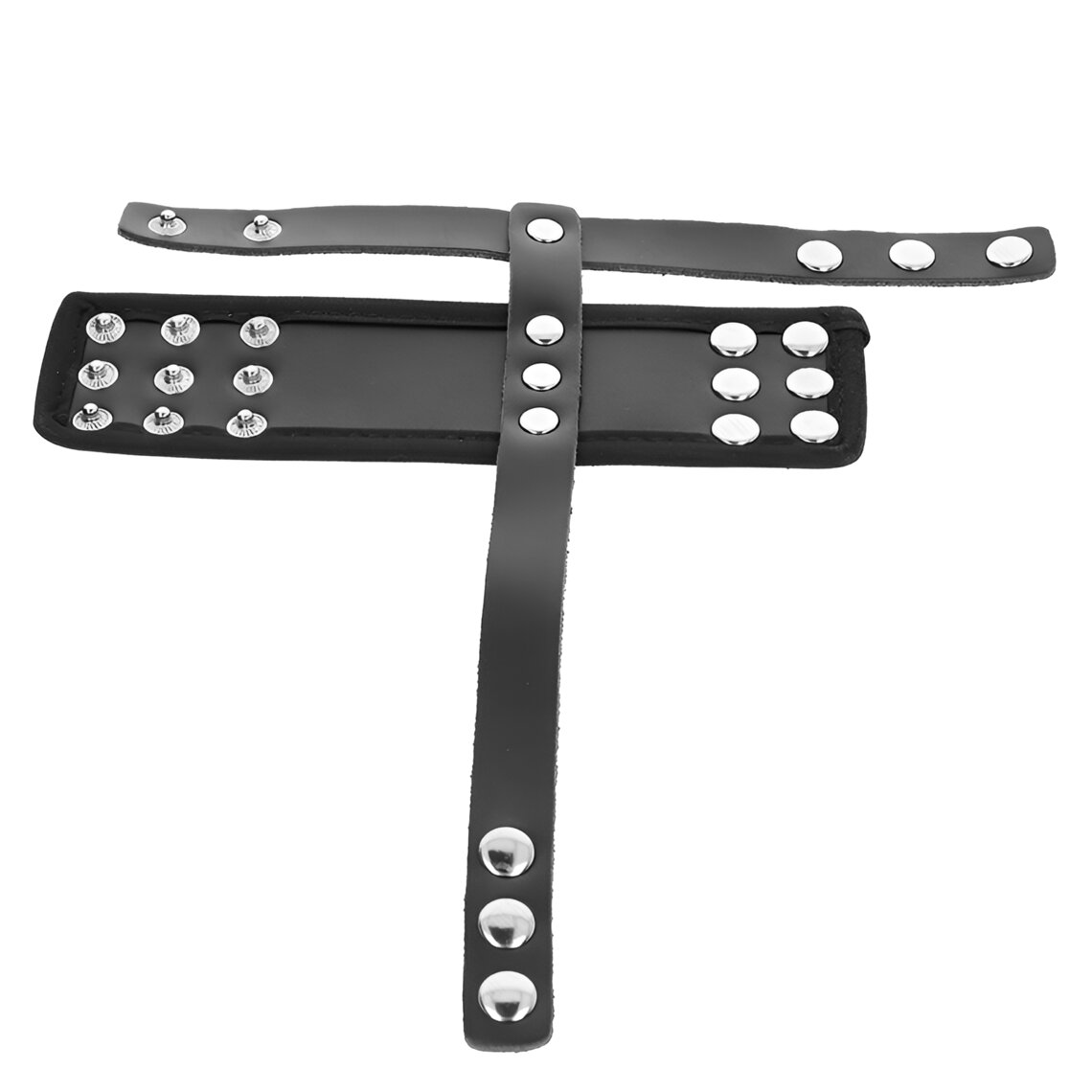 Un accessorio in stile BDSM che combina similpelle e dettagli metallici per un design resistente, regolabile e visivamente distintivo.