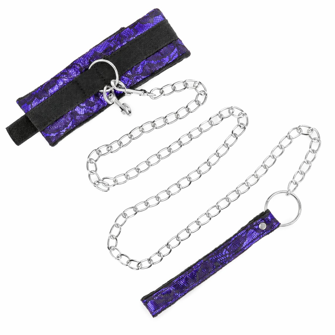 • Descrizione del prodotto  Kink - Collare bondage viola con guinzaglio