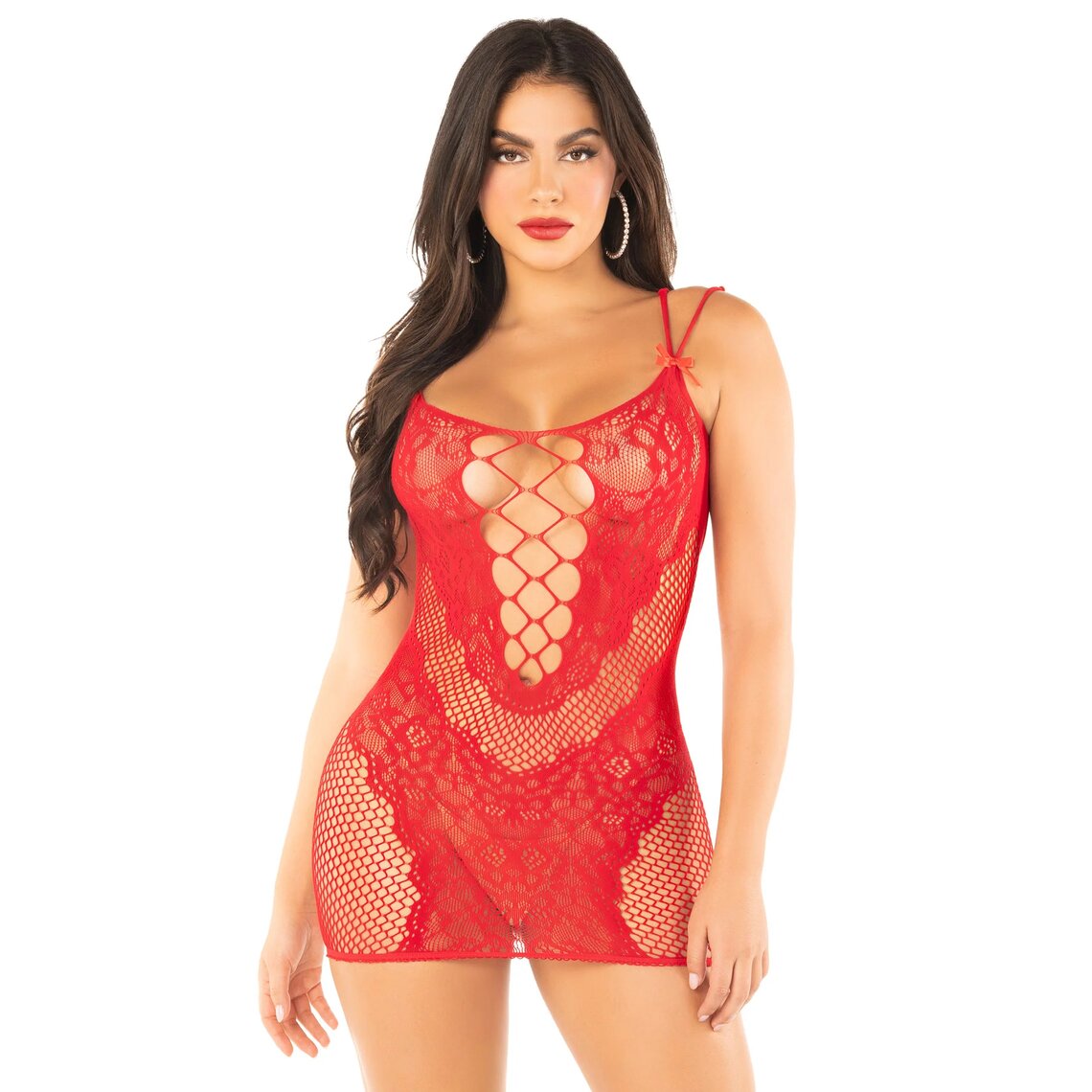• Leg Avenue - Abito a griglia corta con doppie parentesi graffe (Rosso)