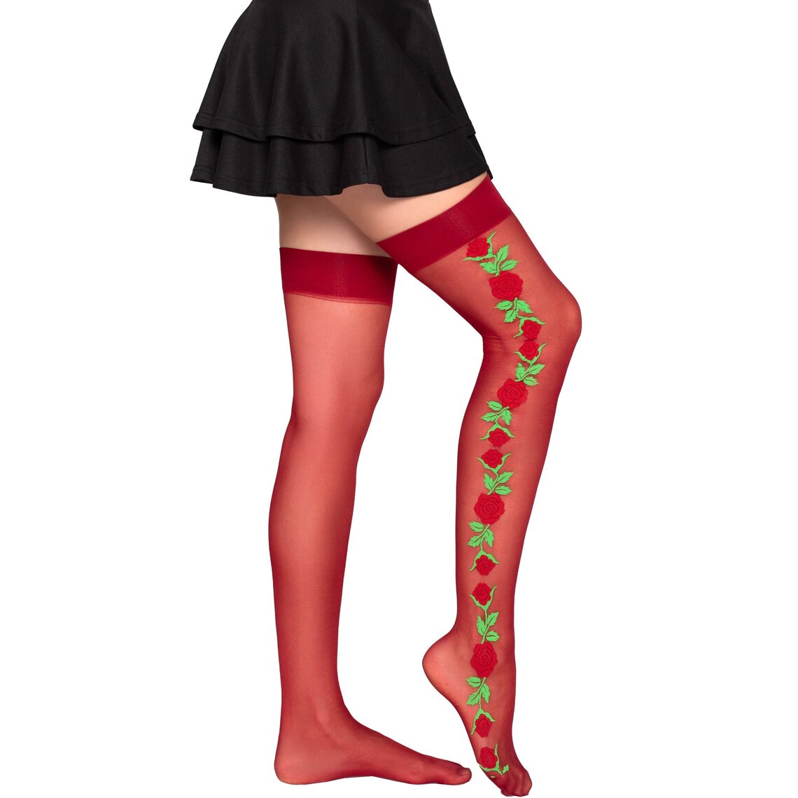 Codice SkuLEG-AVENUE-1957-GARTER-BELT-STOCKINGS-WITH-RED-FLOWERS-ONE-SIZE
