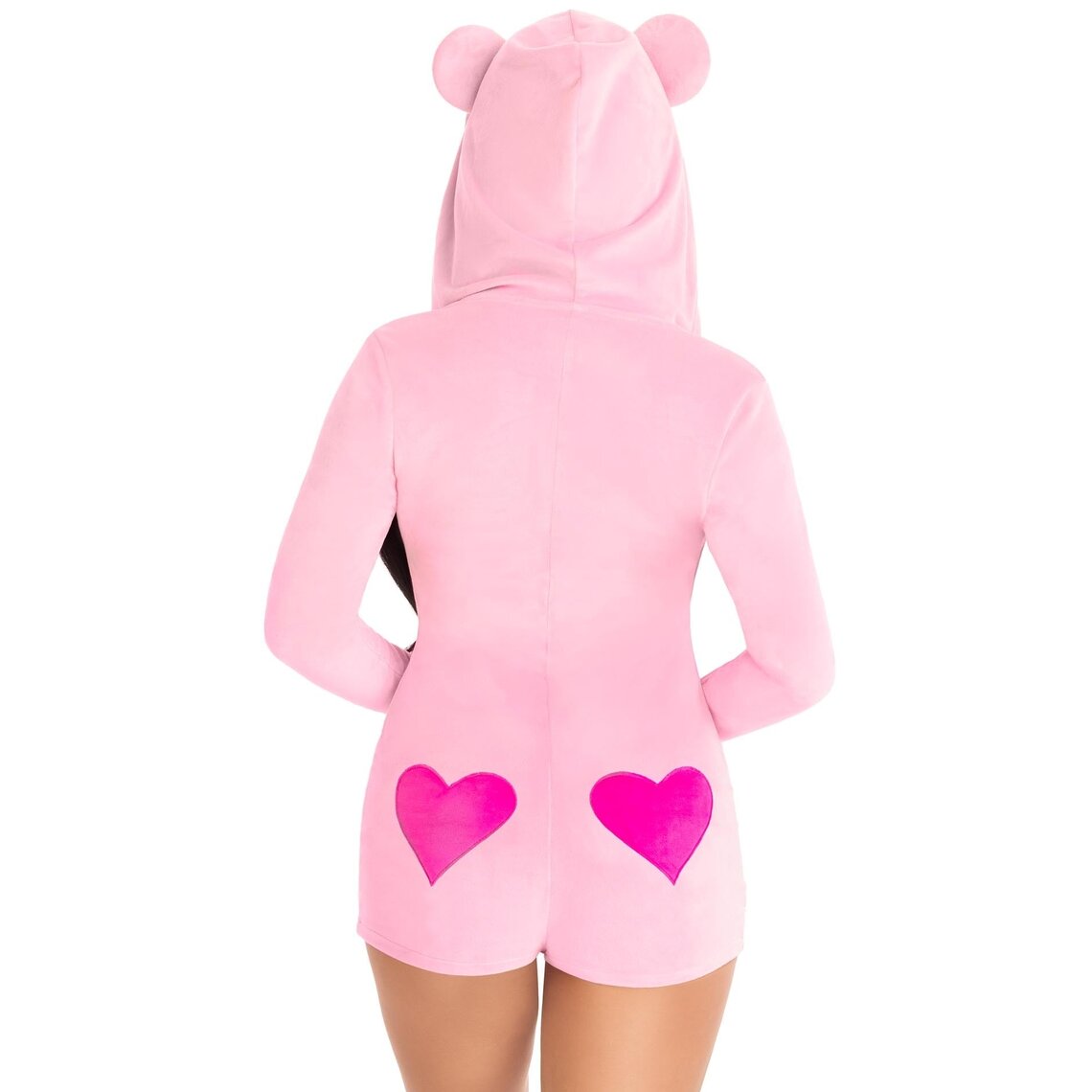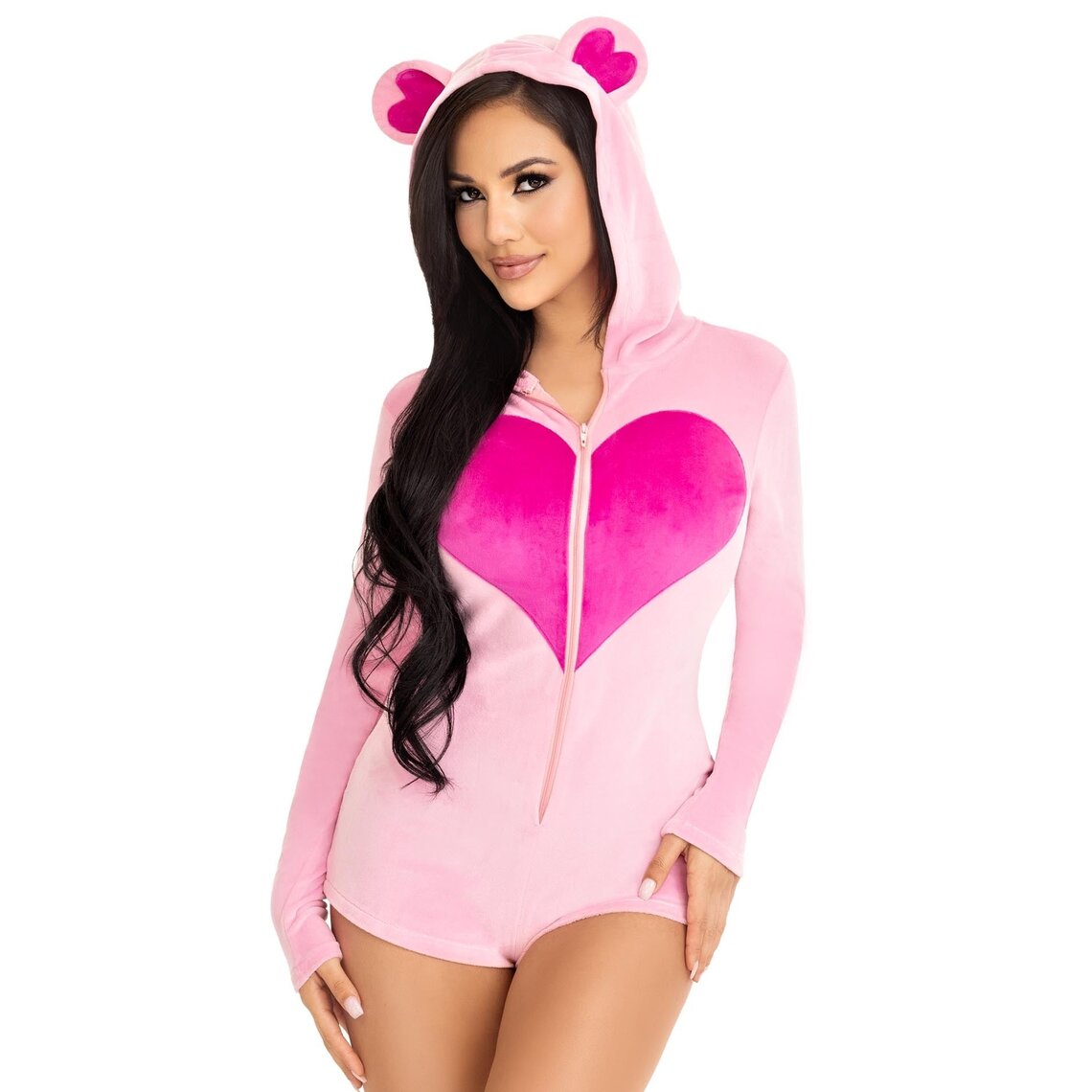 Questo adorabile orsetto indossa una tutina in velluto ultra morbido con chiusura a cerniera e dettagli a forma di cuore, che lo rendono la scelta ideale per le feste di Carnevale o come comodo indumento da notte.
