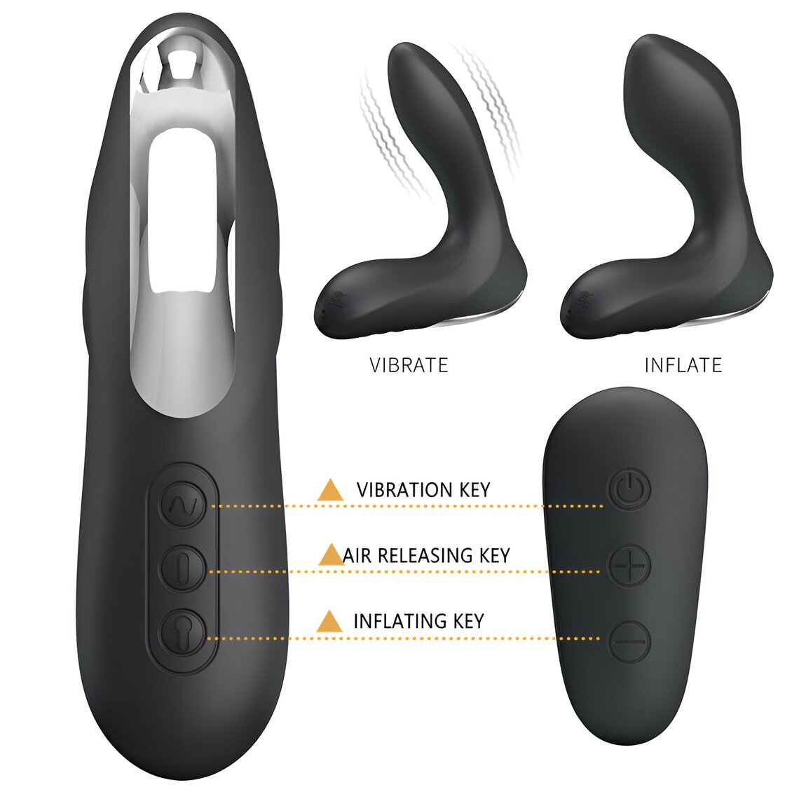Massaggiatore prostatico con vibrazione, sistema gonfiabile e telecomando