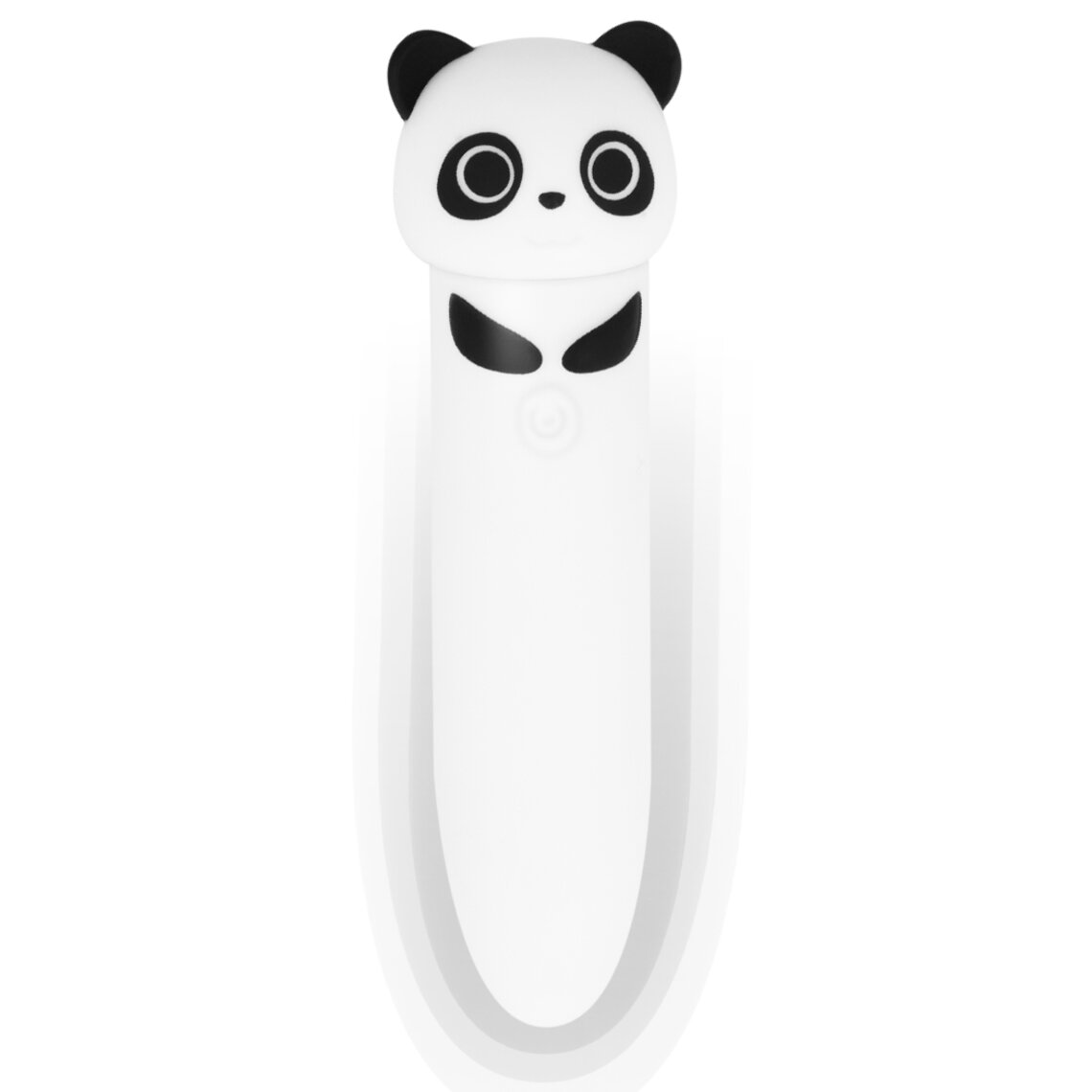 Mini pallina vibrante con testa a forma di panda. Lunghezza totale 10 cm. Resistente all’acqua.
