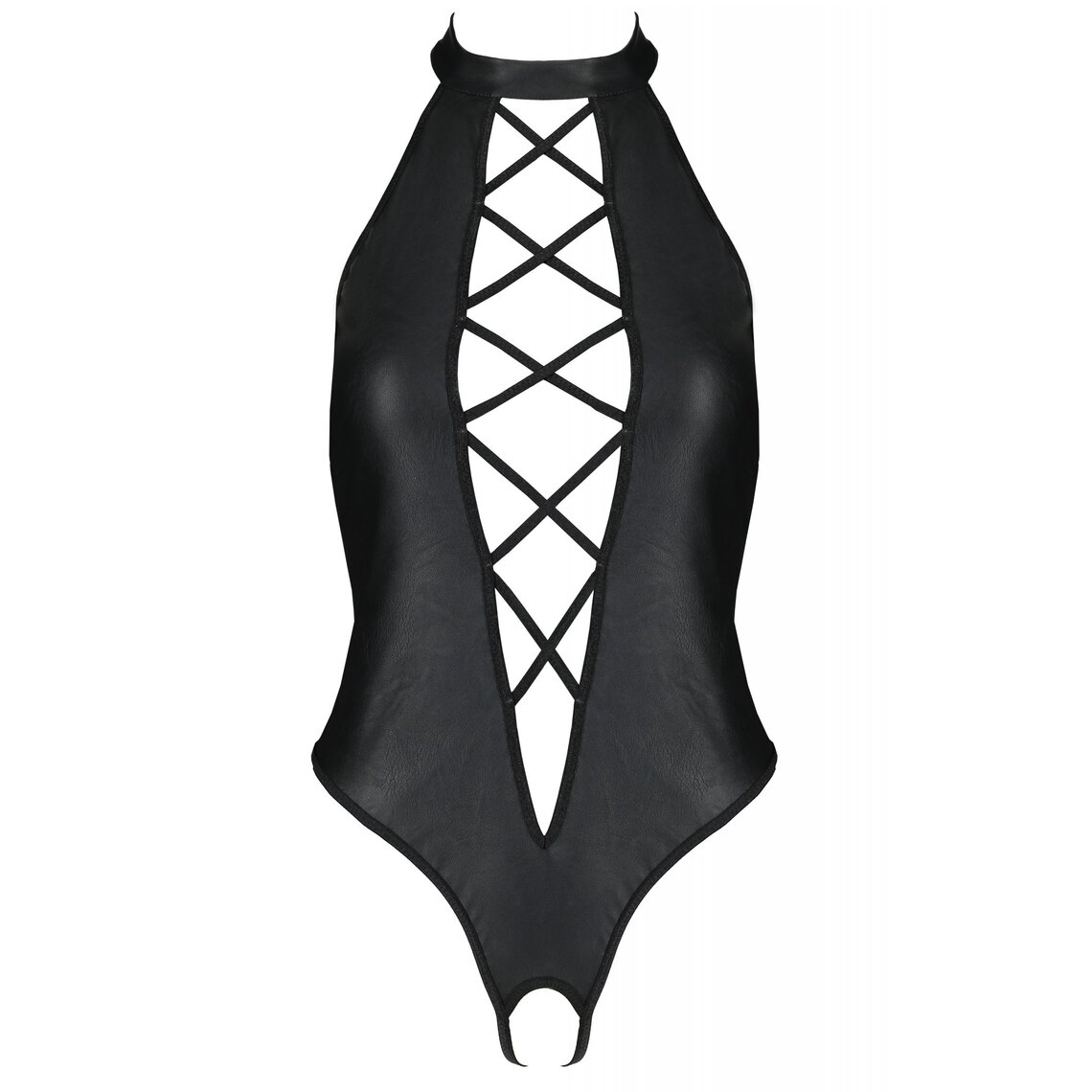 Body stile teddy in ecopelle con scollo profondo e fasce