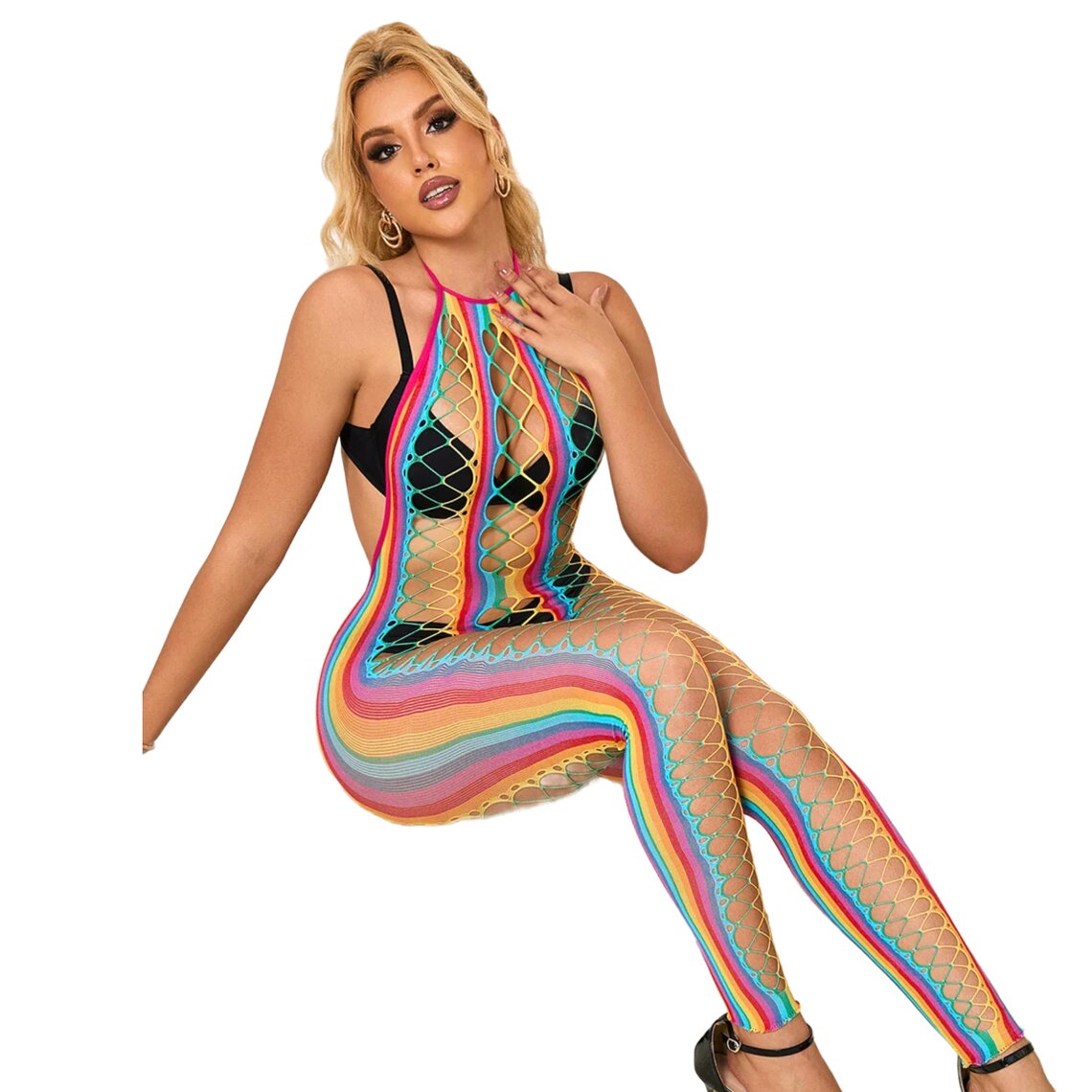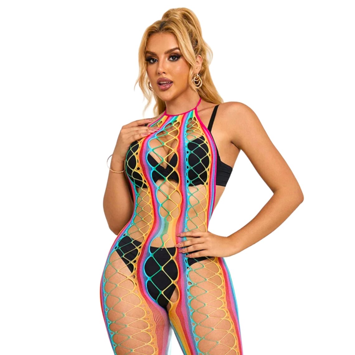 Codice SkuSUBBLIME-952358-RAINBOW-HALTER-NECK-FISHNET-DRESS-ONE-SIZE