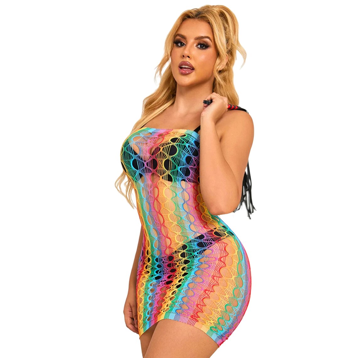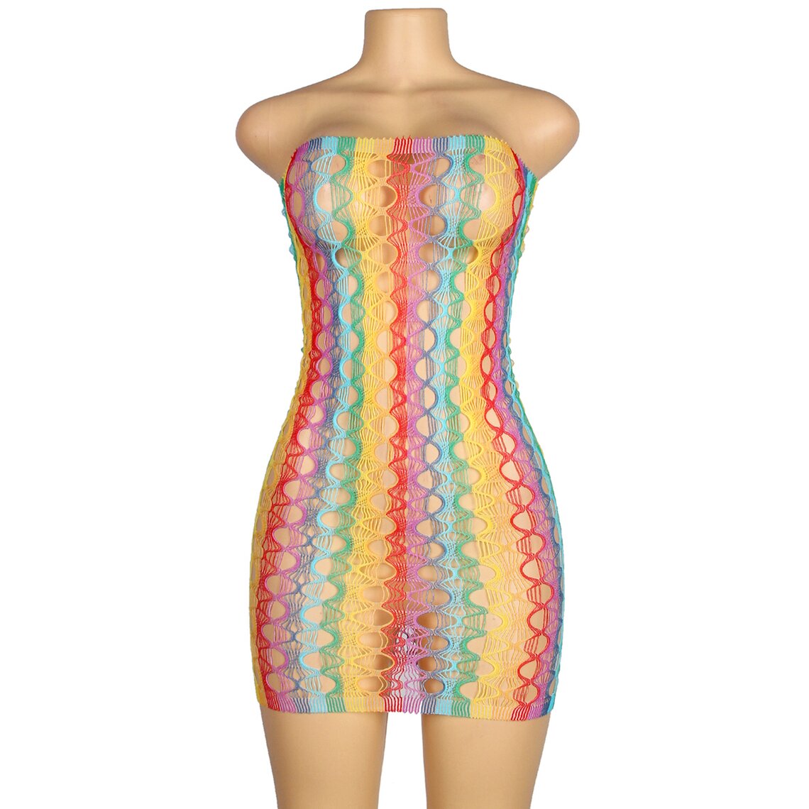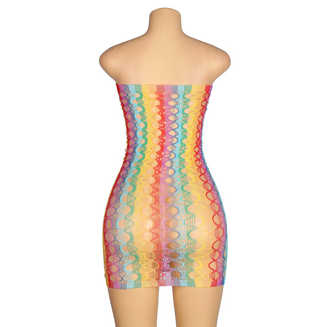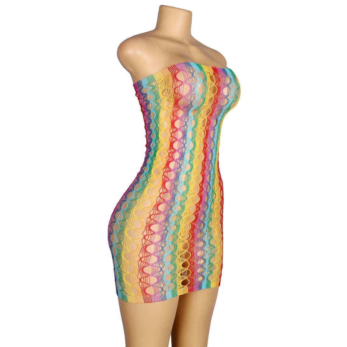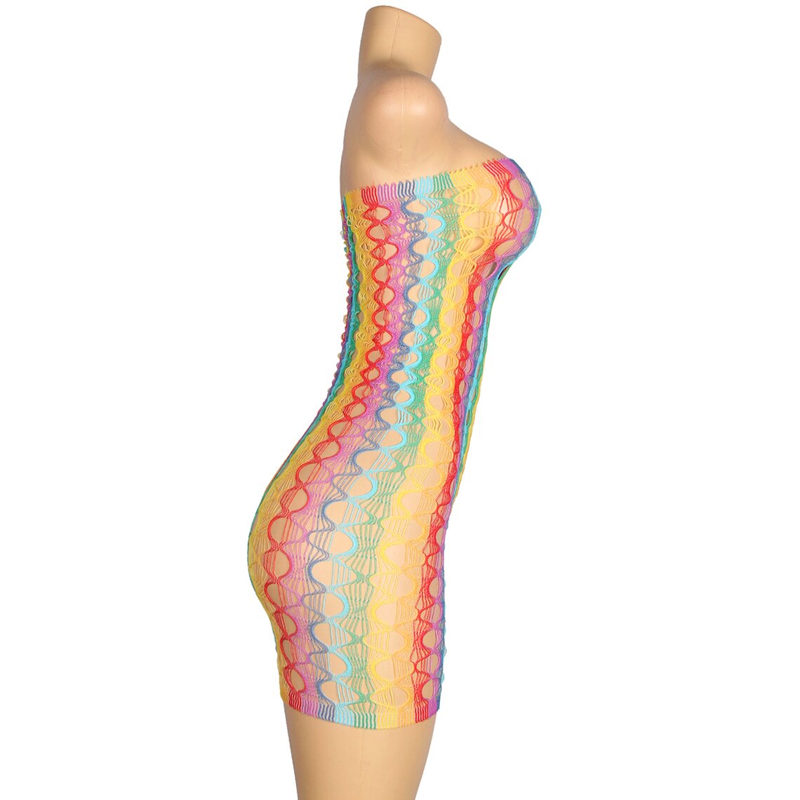 Codice SkuSUBBLIME-952365-RAINBOW-BARE-SHOULDER-FISHNET-DRESS-ONE-SIZE