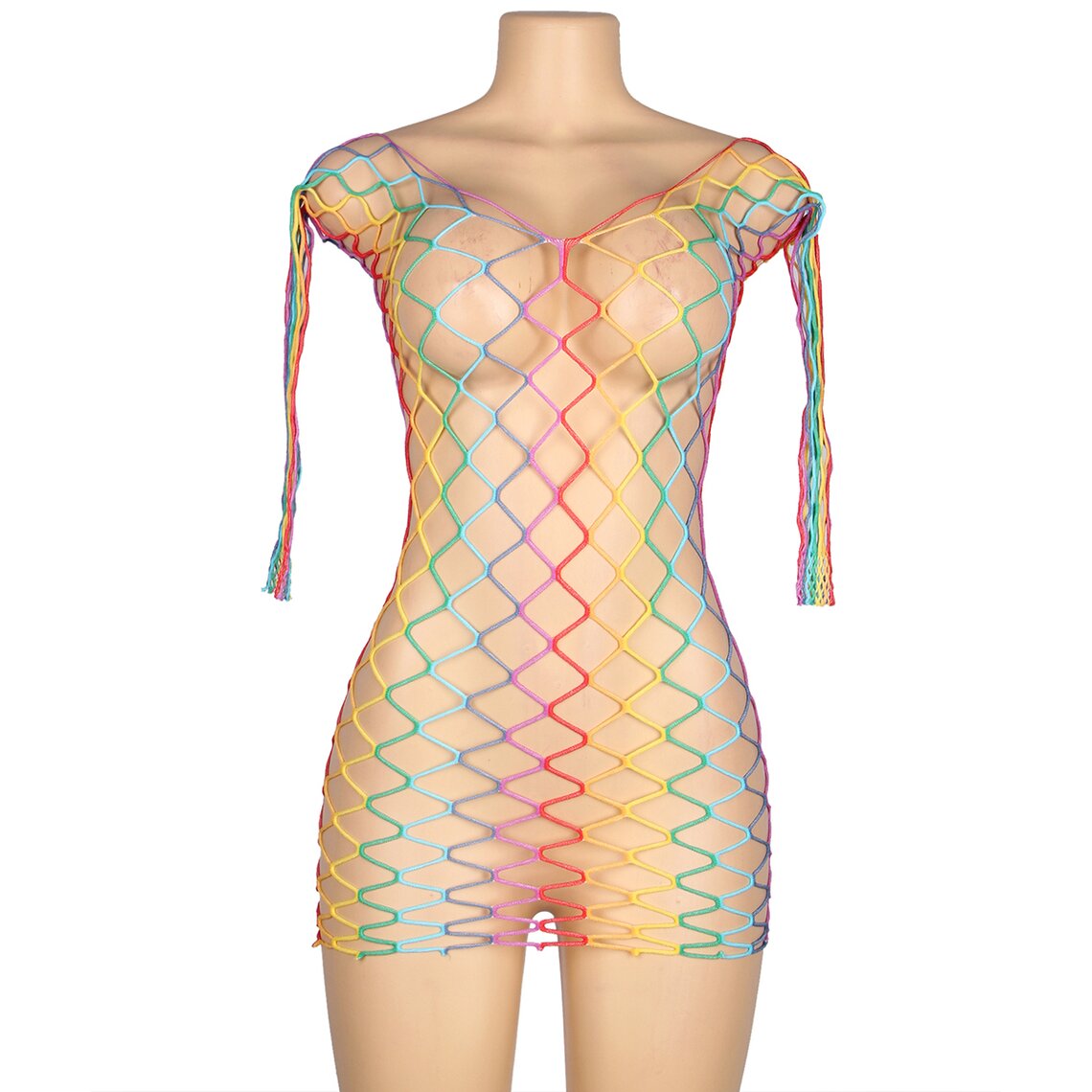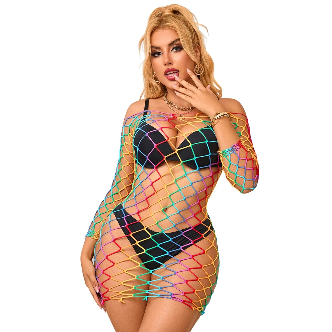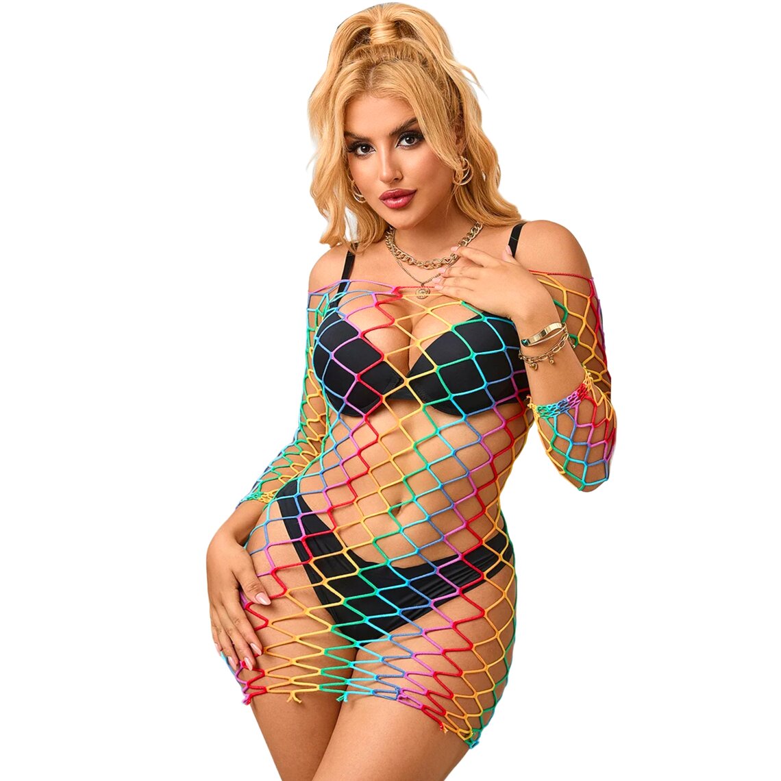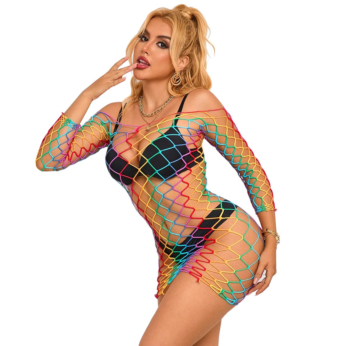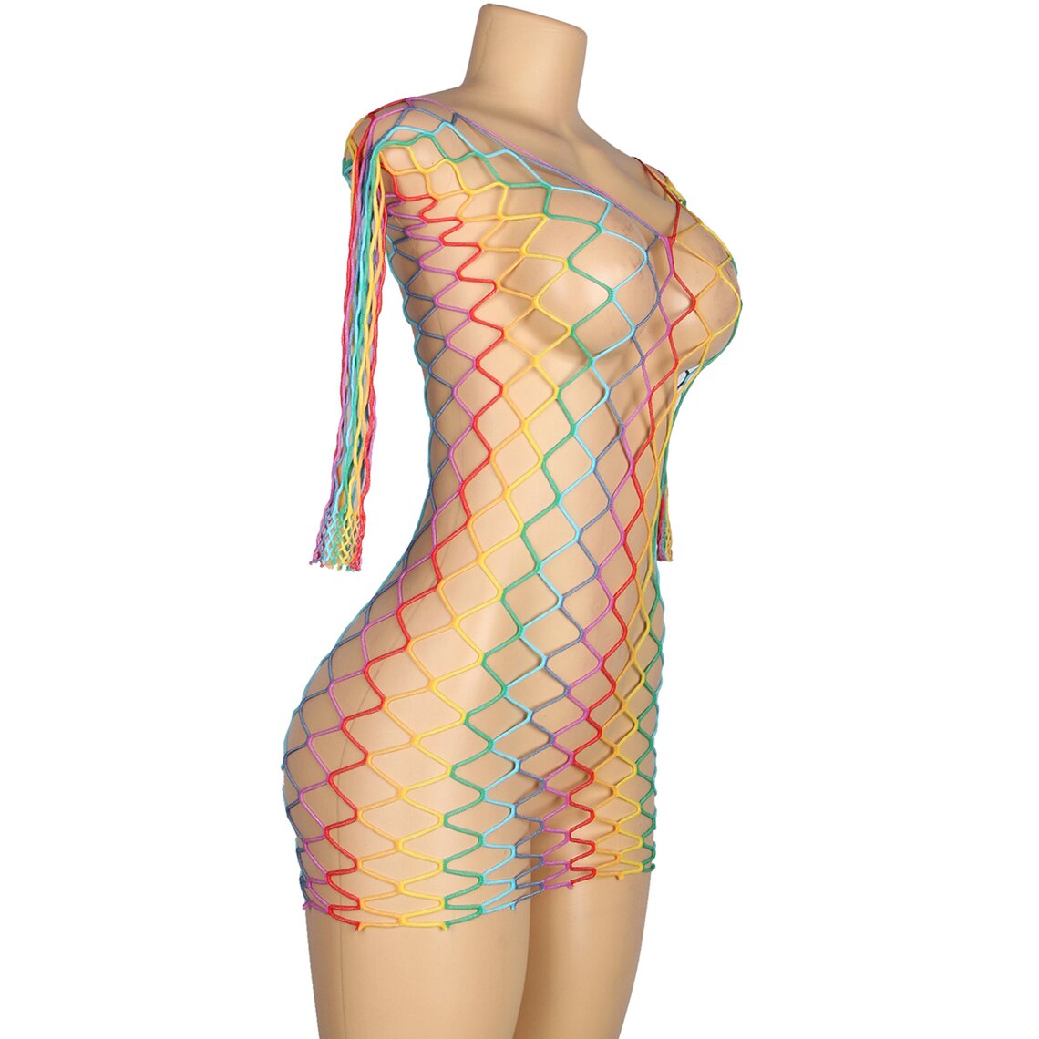 Codice SkuSUBBLIME-952426-RAINBOW-LONG-SLEEVE-FISHNET-DRESS-ONE-SIZE