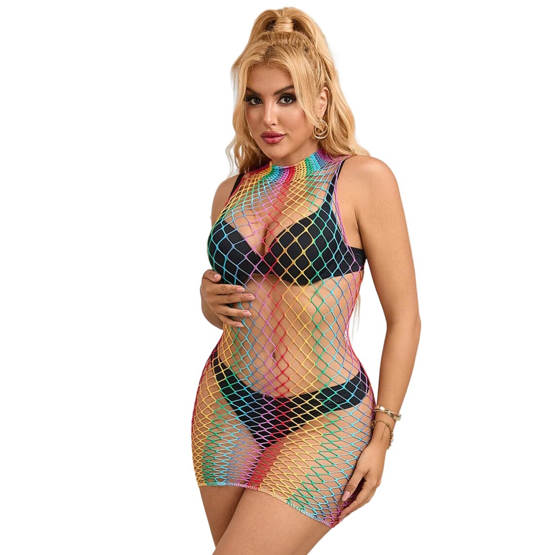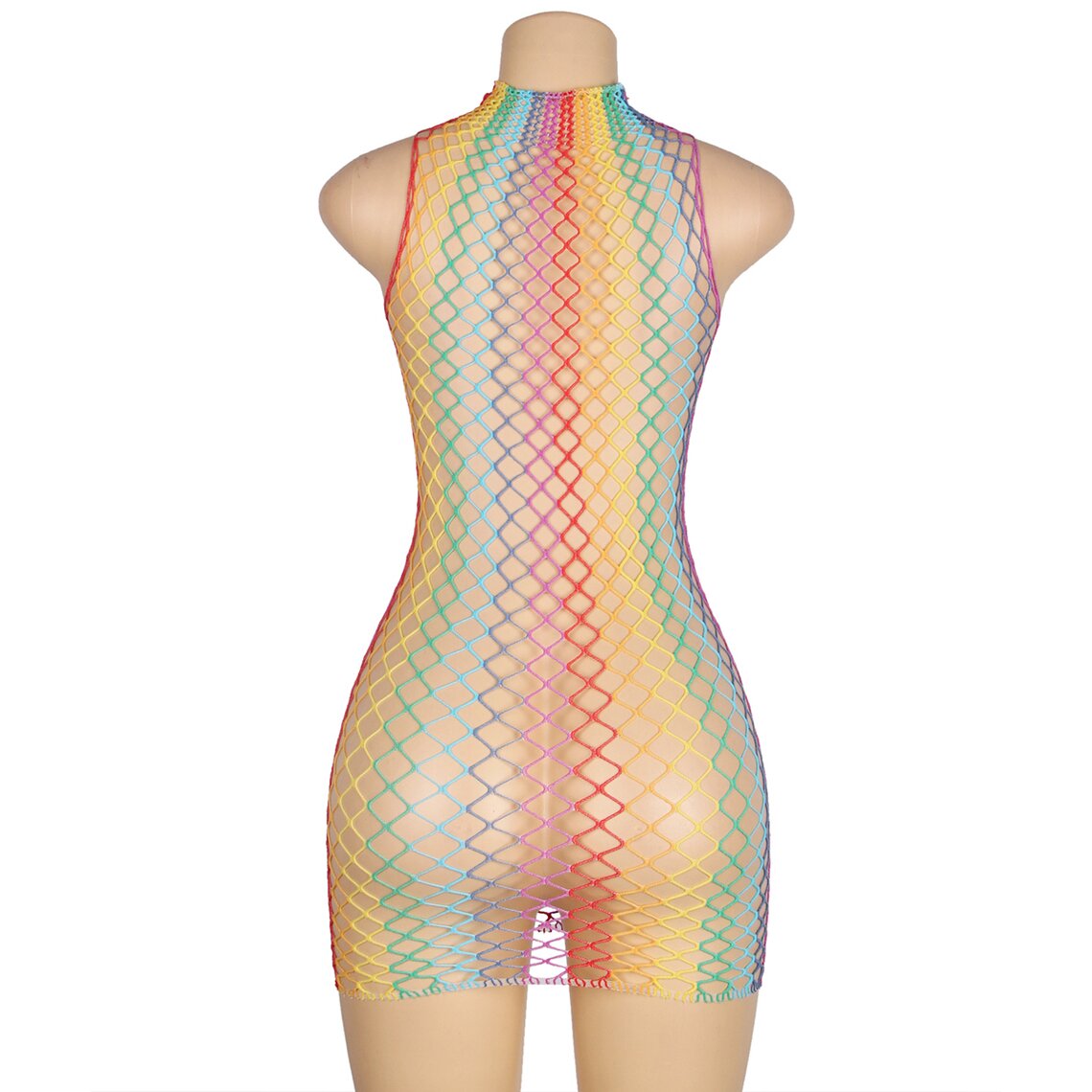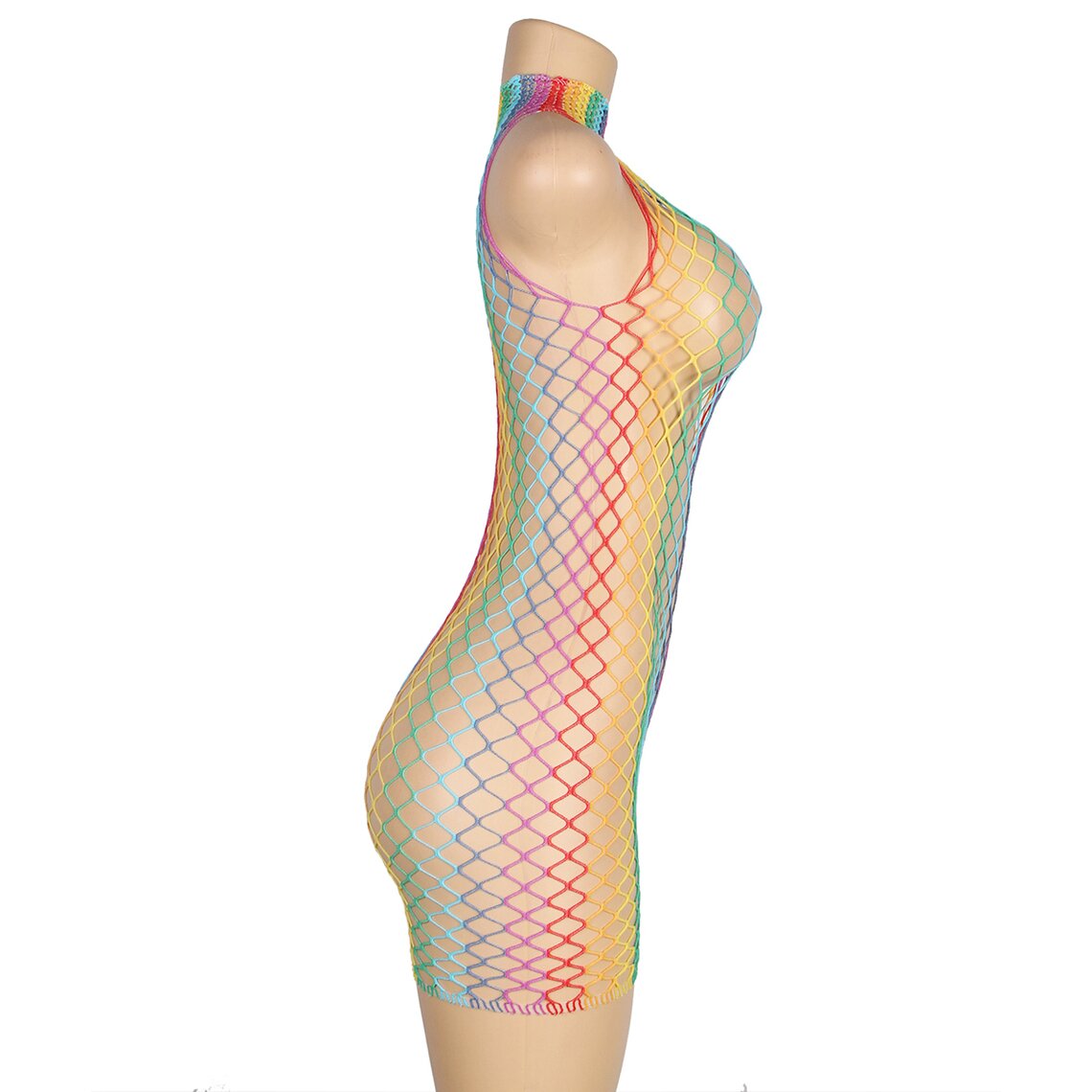 Codice SkuSUBBLIME-952433-RAINBOW-HIGH-NECK-SLEEVELESS-FISHNET-DRESS-ONE-SIZE