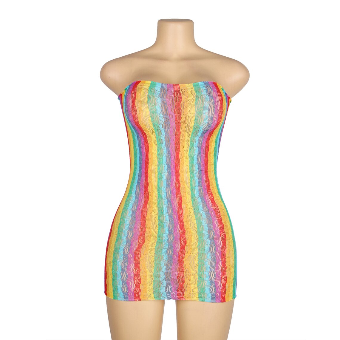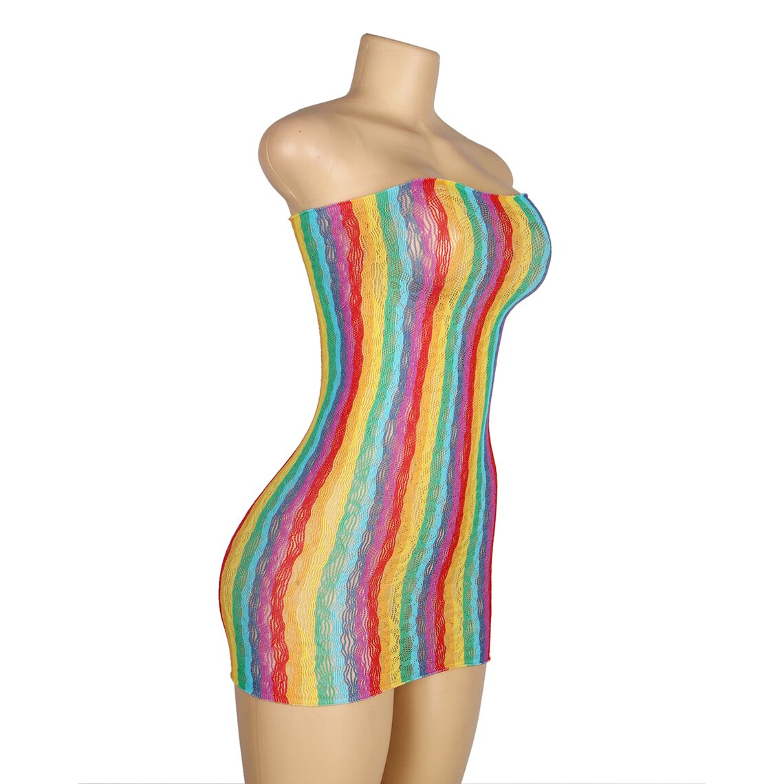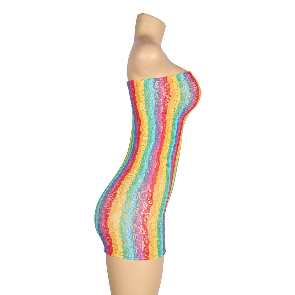 Codice SkuSUBBLIME-952457-RAINBOW-OFF-SHOULDER-SLEEVELESS-FISHNET-DRESS-ONE-SIZE
